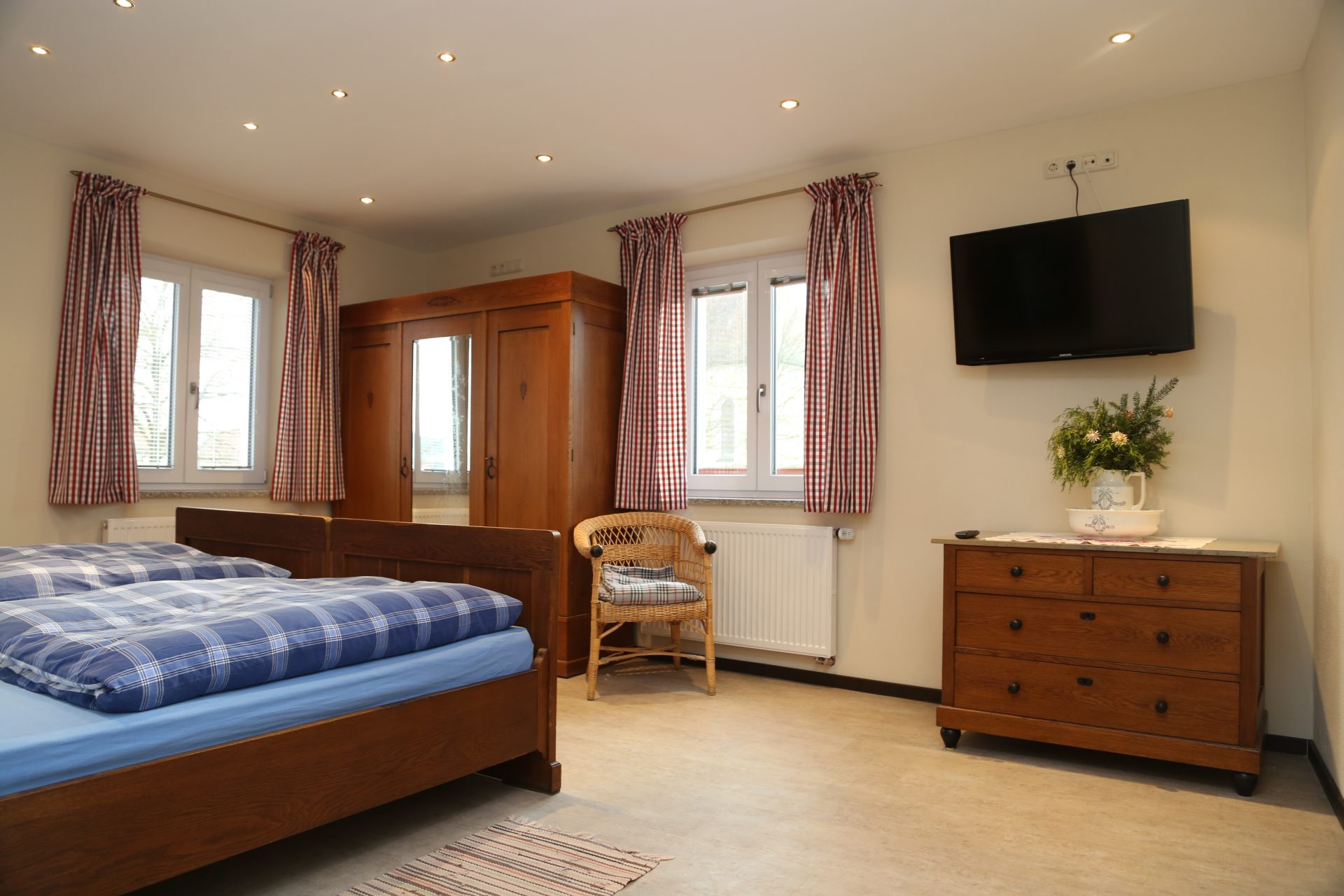 Unsere neu renovierte Wohnung in der 1. Etage bietet Platz für zwei Personen. Sie besteht aus einem gemütlichen Wohn-/Schlafzimmer, einer separaten Küche mit gemütlicher Sitzecke und einem Badezimmer mit WC mit Dusche.